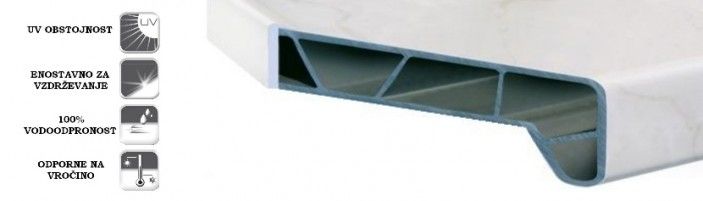 PVC notranje okenske police so izdelane iz trdega PVC materiala. Na površini je dekorativna odporna plast v barvi marmorja, bukve ali v beli barvi. Police so 100% vodoodporne, ne nabrekajo ter ne gnijejo zato so še posebej primerne za vlažne prostore, kot so kopalnice, savne, bazeni.. MONTAŽA je enostavna. Temperaturno so obstojne do +60°C. Oblika police z votlimi prekati nudi tudi dobre izolacijske lastnosti v primerjavi s policami iz naravnih materialov.